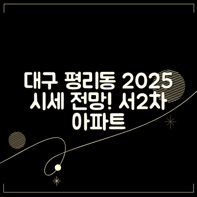 안녕하세요! 오늘은 대구시 서구 평리동의 평리동서2차 아파트에 대해 이야기해볼게요. 2025년 10월 시세 전망을 알고 싶다면, 여기서 3가지 주요 투자 포인트를 확인해보세요!