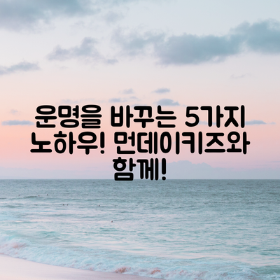 운명을 바꾸고 싶다면, 작은 변화부터 시작해보세요. 아마도 이런 생각을 해본 적이 있을 겁니다. 더 나은 나를 위해 어떤 첫걸음을 내딛을 수 있을까? 먼데이키즈처럼 나만의 운명을 스스로 만들 수 있는 다양한 방법이 있습니다. 직접 실천해보면, 분명히 변화가 찾아올 거예요!