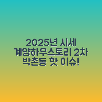 인천시 계양구 박촌동의 계양하우스토리2차 아파트에 투자할 때, 다양한 요소를 고려하는 것이 중요합니다. 특히 2025년 11월 시세 전망은 투자 결정에 중대한 영향을 미칠 수 있습니다.