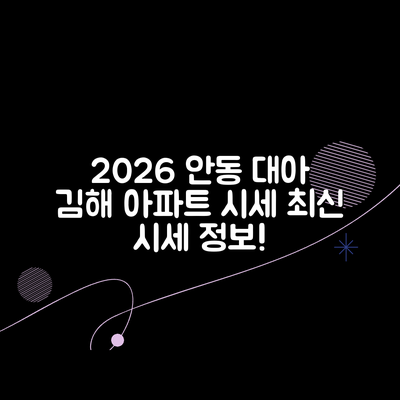 안동 대아 아파트의 2026년 예측 정보를 제공합니다